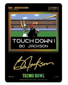 Tecmo Bowl Edition also features the Touchdown Bo Jackson /34 Black Variation cards with Bo's signature in gold ink.